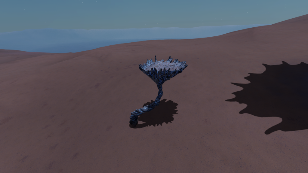 Radicoida Unica appear to be a tree-like species, glowing with a light blue bioluminescence, it’s root system near ground level being similar in appearance to ancient Mangrove tree’s that were once present on Earth.